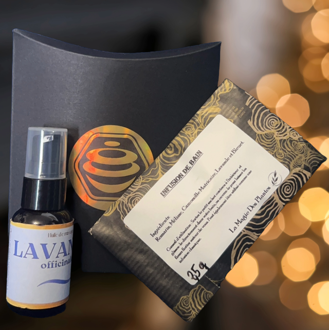 Imaginez commencer la soirée avec un bain apaisant grâce à notre infusion délicate, où elle pourra se détendre et se ressourcer. Ensuite, prolongez ce moment de douceur et de complicité en lui offrant un massage à l'huile de lavande, faite d'ingrédients naturels.